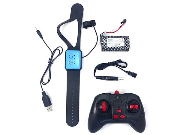 В набор входит сама машинка, провод для зарядки от USB, пульт-перчатка+USB зарядка, пульт классический, инструкция, упаковка.