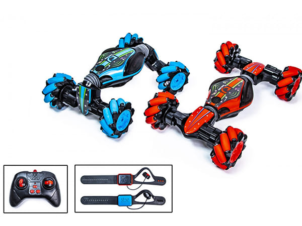 Такого Вы еще не видели. Мало того, что машинка выполняет развороты на 360 градусов, умеет приподнимать кабину для лучшей проходимости по бездорожью, ездит боком и вверх ногами, очень быстрая и красивая, так еще она управляется от браслета, который крепится на руку.